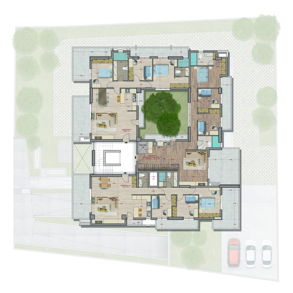 This impressive six-story building will be located in a quiet neighborhood of the Southern Suburbs, in Palaio Faliro. It will accommodate 18 apartments and will have a basement, a cellar, a roof and an internal atrium, with planting on the ground floor.
