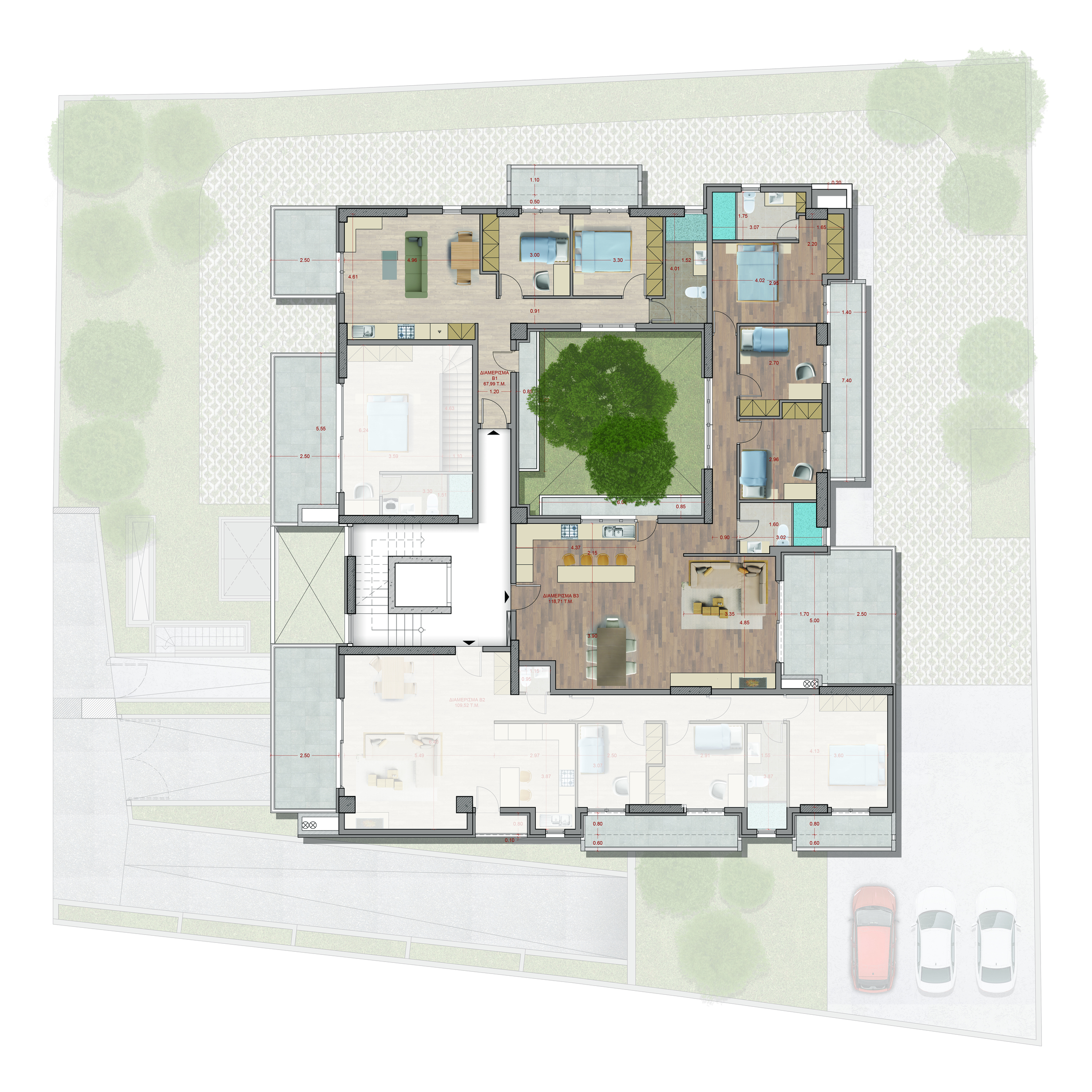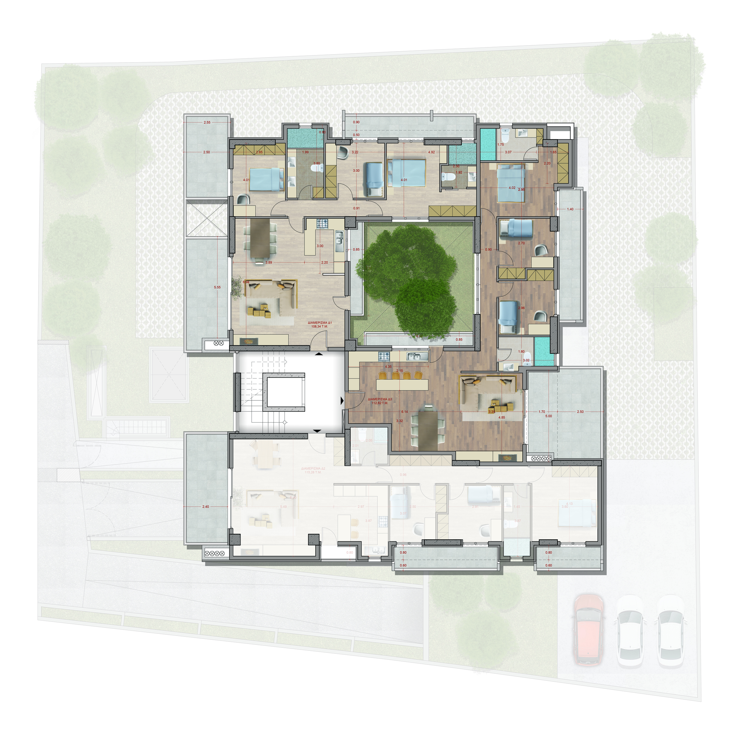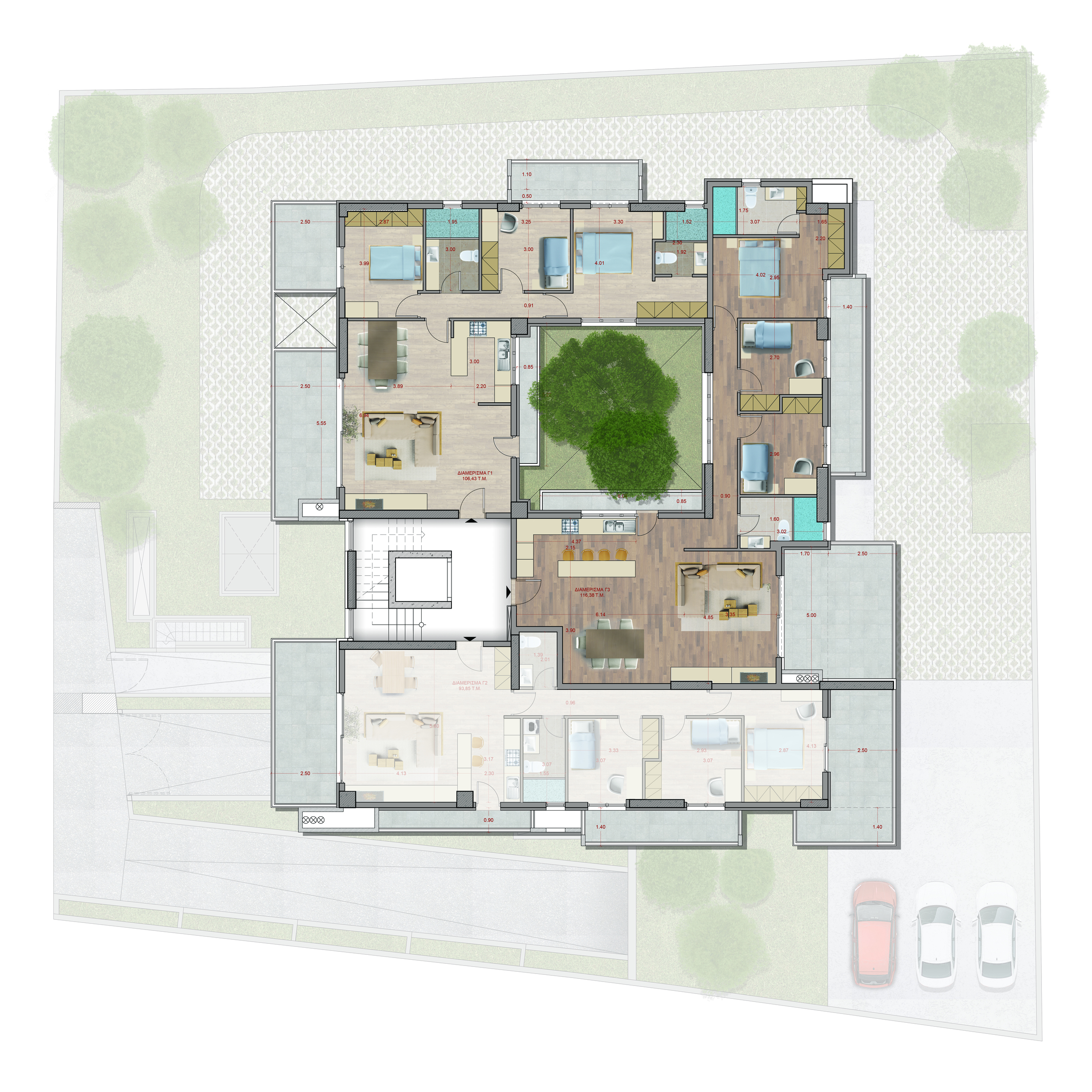 Εσωτερικό αίθριο, διαστάσεων 6.99 Χ 6.94 μ. με φύτευση στο ισόγειο