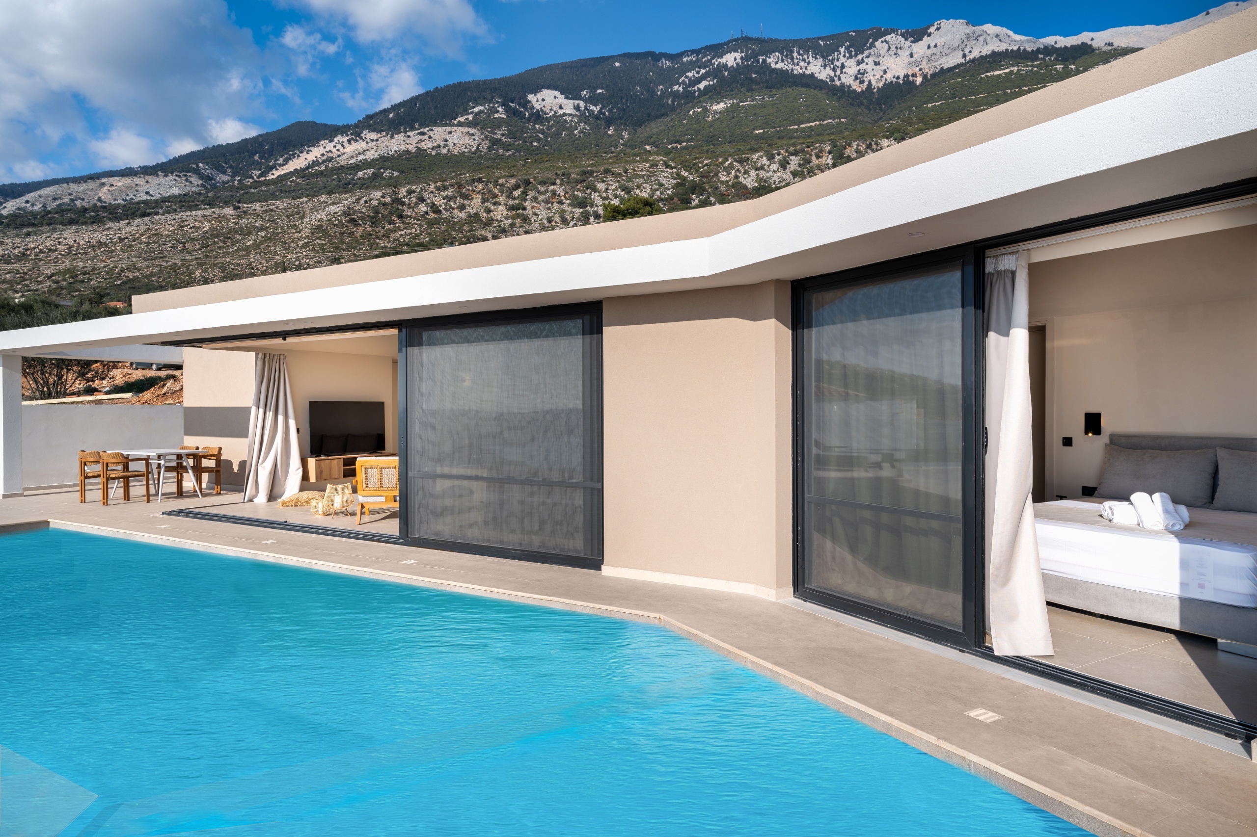 Η εταιρία PARKAT CONSTRUCTION παρουσιάζει με υπερηφάνεια το νέο της έργο, ένα υπερσύγχρονο συγκρότημα πέντε πολυτελών ισόγειων κατοικιών με ιδιωτικές πισίνες στα Σιμωτάτα της Κεφαλονιάς.